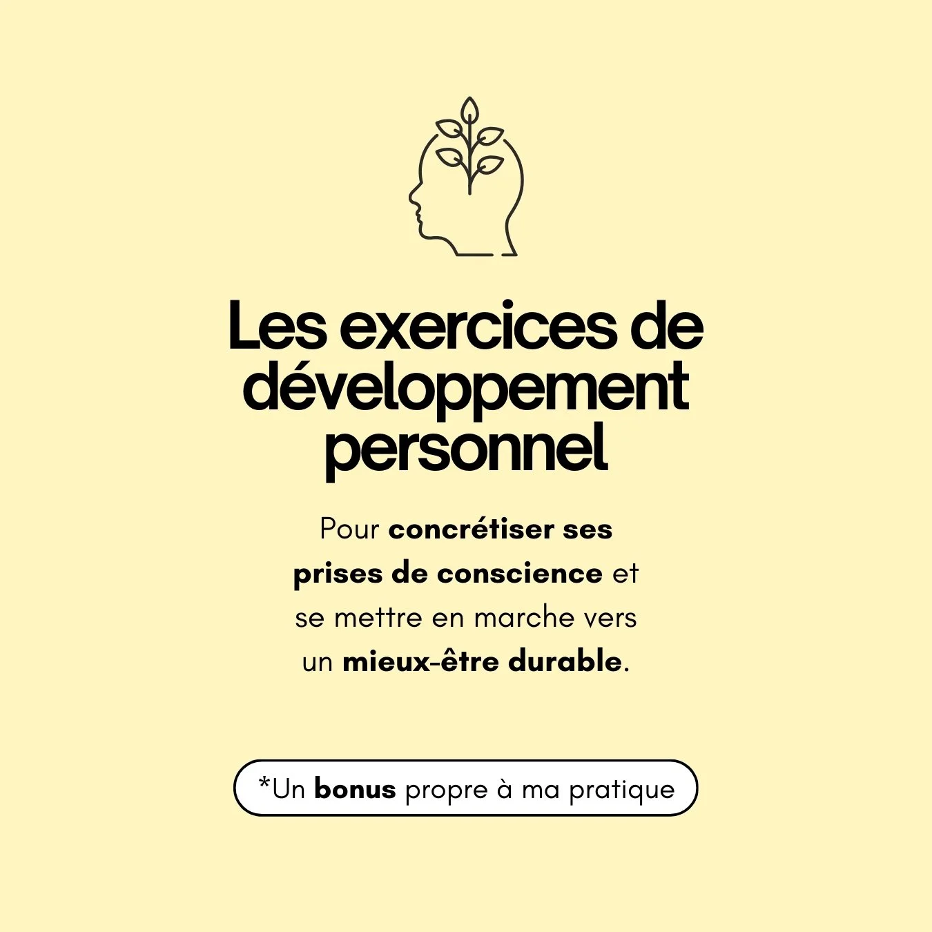 L’objectif est que vous deveniez autonome dans votre pratique et prises de conscience, ce qui vous permettra d’améliorer votre bien-être sur le long terme.